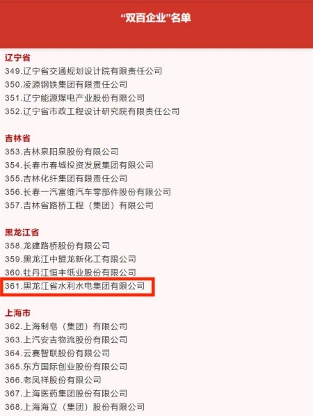 近日,國(guó)務(wù)院國(guó)資委發(fā)布了最新的國(guó)企改革“雙百企業(yè)”名單,水利水電集團(tuán)榜上有名,成為黑龍江省僅有的四戶“雙百企業(yè)”之一。
