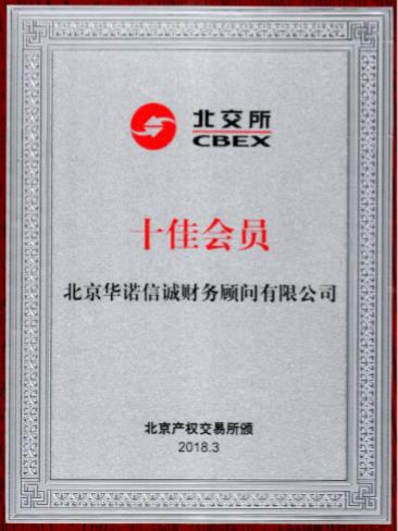 在大家的關(guān)心、幫助和指導(dǎo)下,北京華諾信誠(chéng)財(cái)務(wù)顧問(wèn)有限公司成立十年以來(lái),已連續(xù)十年獲得北京產(chǎn)權(quán)交易所授予的“十佳會(huì)員”榮譽(yù)。獲此殊榮,是對(duì)我們會(huì)員單位以往工作的肯定,也是對(duì)我們會(huì)員單位繼續(xù)做好工作的鞭策。