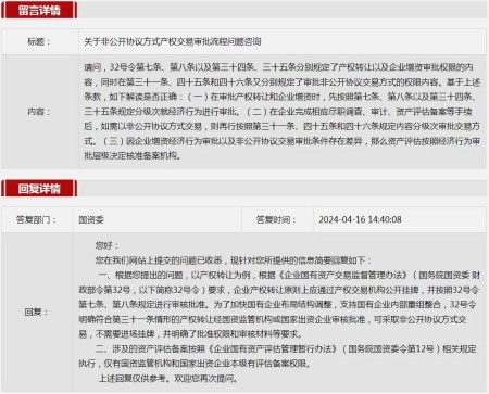 2024年4月國資委網(wǎng)站政務(wù)咨詢欄目部分網(wǎng)友提出的咨詢,我們初步做出了認(rèn)真的回應(yīng),現(xiàn)選擇五條關(guān)注度高、點(diǎn)擊量高的問題,再次推薦分享。