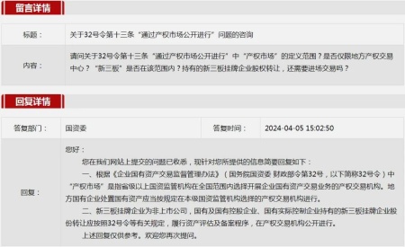 2、關(guān)于32號(hào)令第十三條“通過產(chǎn)權(quán)市場公開進(jìn)行”問題的咨詢