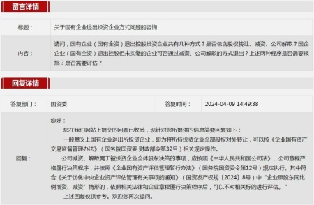 3、關(guān)于國有企業(yè)退出投資企業(yè)方式問題的咨詢