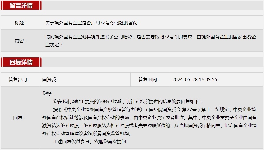 5、關(guān)于境外國有企業(yè)是否適用32號令問題的咨詢