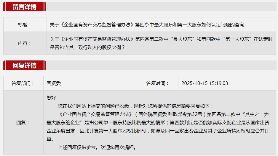 2025年10月國務院國資委網站政務咨詢欄目部分網友提出的咨詢,我們初步做出了認真的回應,現選擇五條關注度高、點擊量高的問題,再次推薦分享。