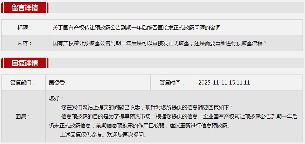 3.關(guān)于國(guó)有產(chǎn)權(quán)轉(zhuǎn)讓預(yù)披露公告到期一年后能否直接發(fā)正式披露問題的咨詢